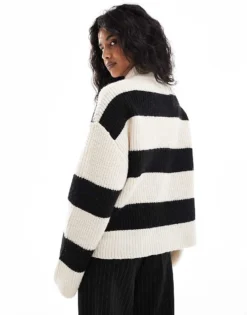 Pieces Zip High Neck Jumper In Wide Mono Stripe For Women Birch