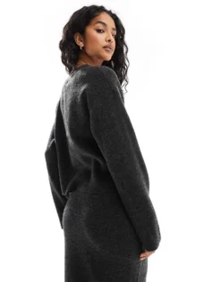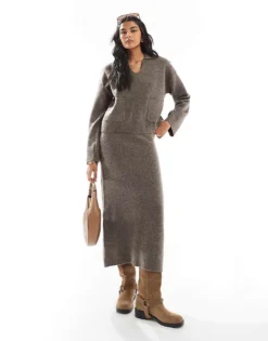 Pieces Open Polo Neck Jumper Co-ord In Deep Taupe For Women Morel