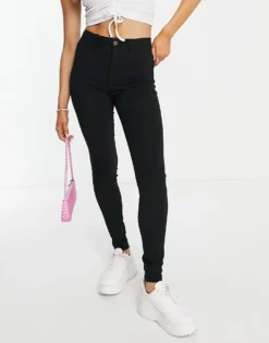 Pieces Highskin Skinny Jeans With High Waist In Black For Women