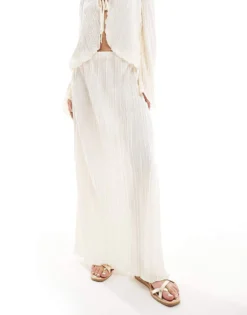 Pieces Mix And Match Plisse Wide Leg Trouser Co-ord In Cream For Women Cloud Dancer