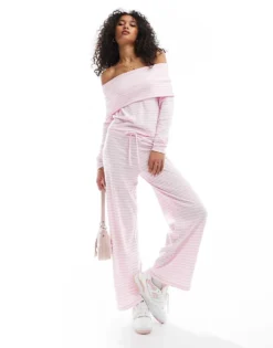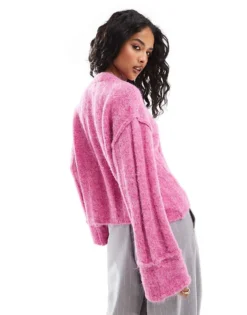 Pieces Ribbed Knit Jumper With Wide Sleeves In Pink Melange For Women