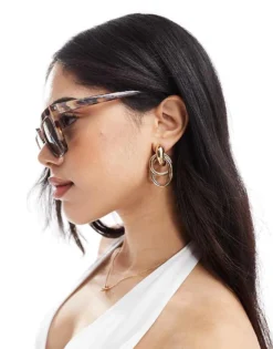 Pieces Square Frame Sunglasses With Brown Tint Lense In Tortoiseshell For Women Brown Sugar