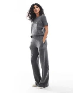 Pieces Mix & Match Cozy Knitted Set In Dark Grey Melange