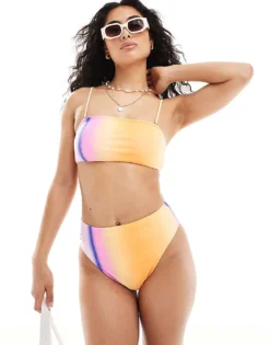 Pieces Ombre Bralette Bikini Top And High Waisted Bikini Bottom Co-ord In Blazin